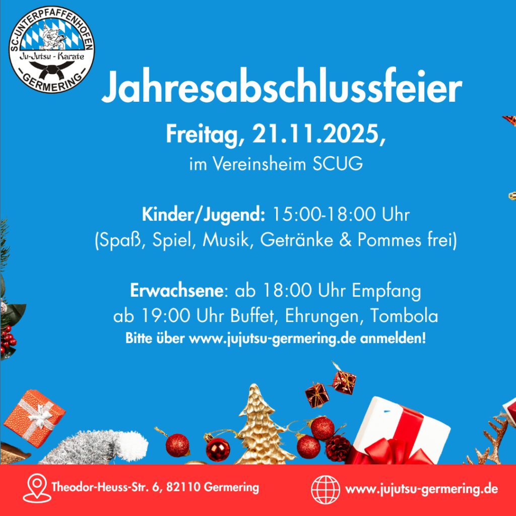 auch in diesem Jahr feiern wir wieder unseren Jahresabschluss bei unserem Vereinswirt im Vereinsheim des SCUG (Bertha-von-Suttner-Straße 3, 82110 Germering).