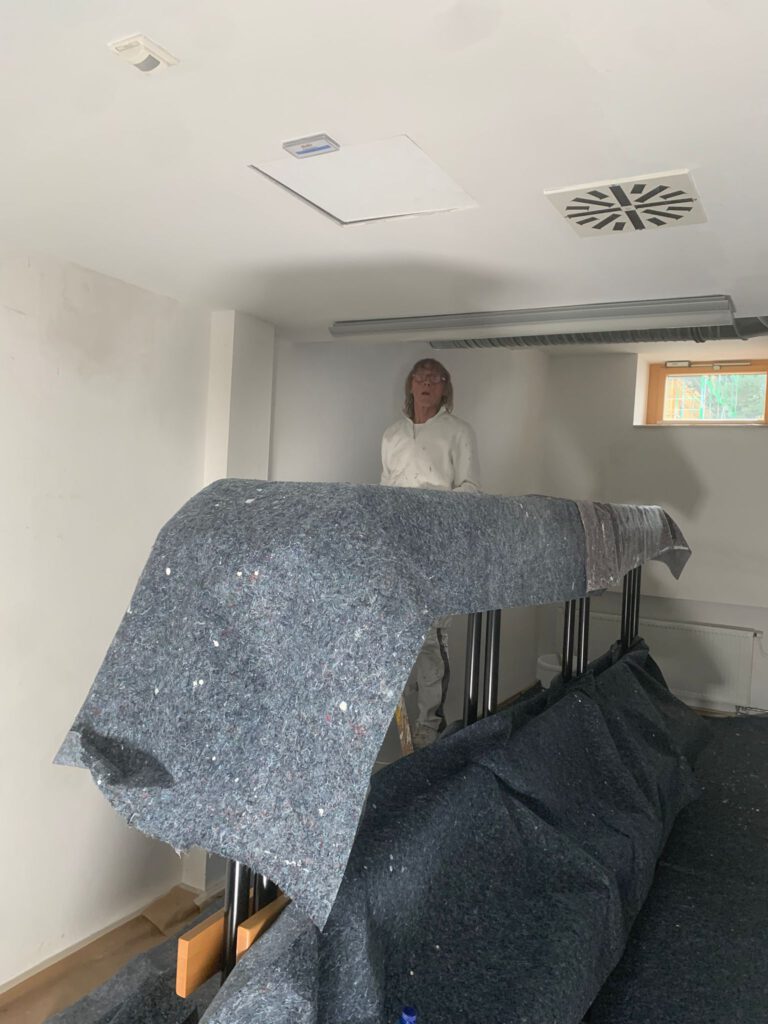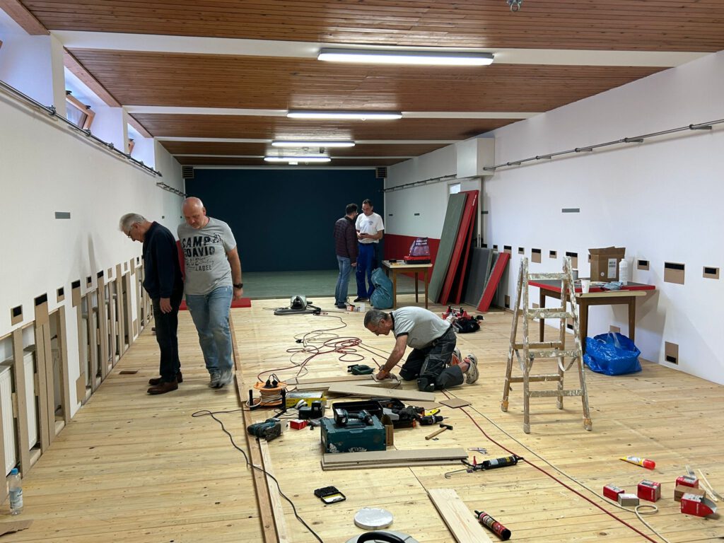 Am Donnerstag folgte schließlich der Endspurt: Die restlichen Bodenmatten wurden verlegt, die Wandverkleidung endmontiert und abschließende Aufräum- sowie Reinigungsarbeiten durchgeführt.